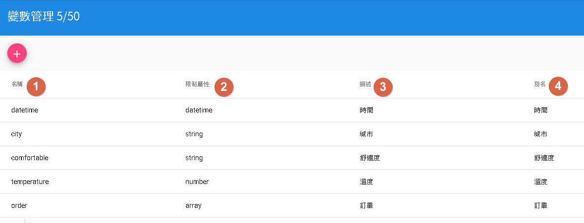 4.別名:這是一個可選的屬性,用於為變數指定別名,以便更容易理解和辨識該變數。例如,如果變數名稱是"price",您可以為其指定別名"價格"或"價錢",這樣在對話流程中使用該變數時,可以更直觀地理解其含義。