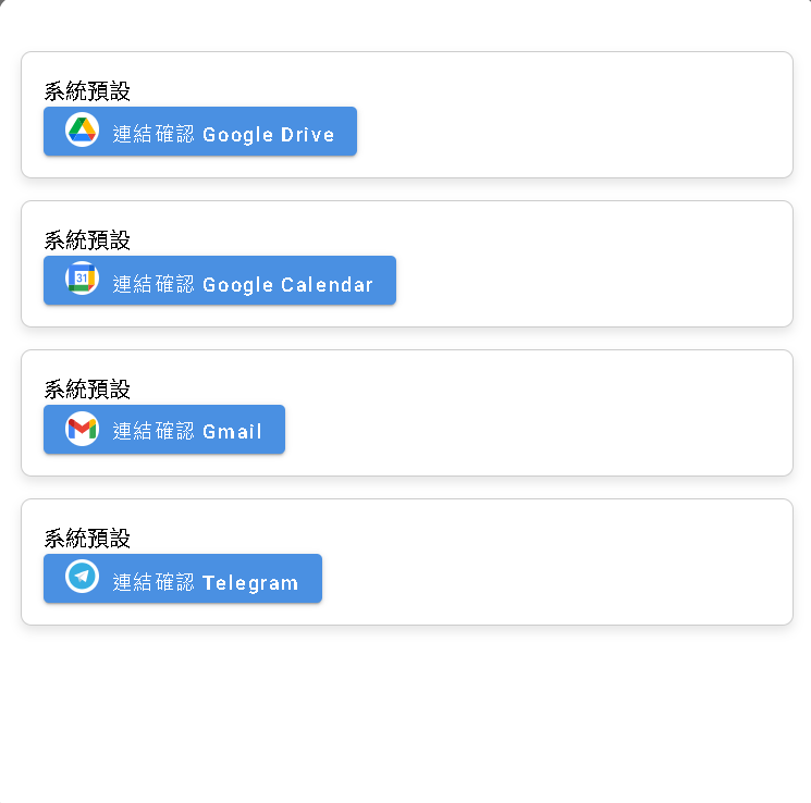 Gmail一般用戶不會顯示。另外Telegram為通知管理用，無法綁定自己憑證。